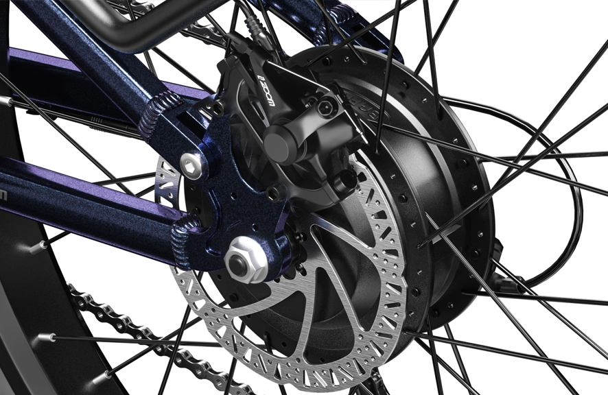 This motor can generate up to 1000w peak power! The motor is the heart of the electric bicycle and the most critical component of the electric bicycle. Its performance affects power, speed, endurance and wading ability. Motor climbing ability: 35°, waterproof level: IPX5, torque 80 N·m. Maximum riding speed 25KM/H (15.5mph).