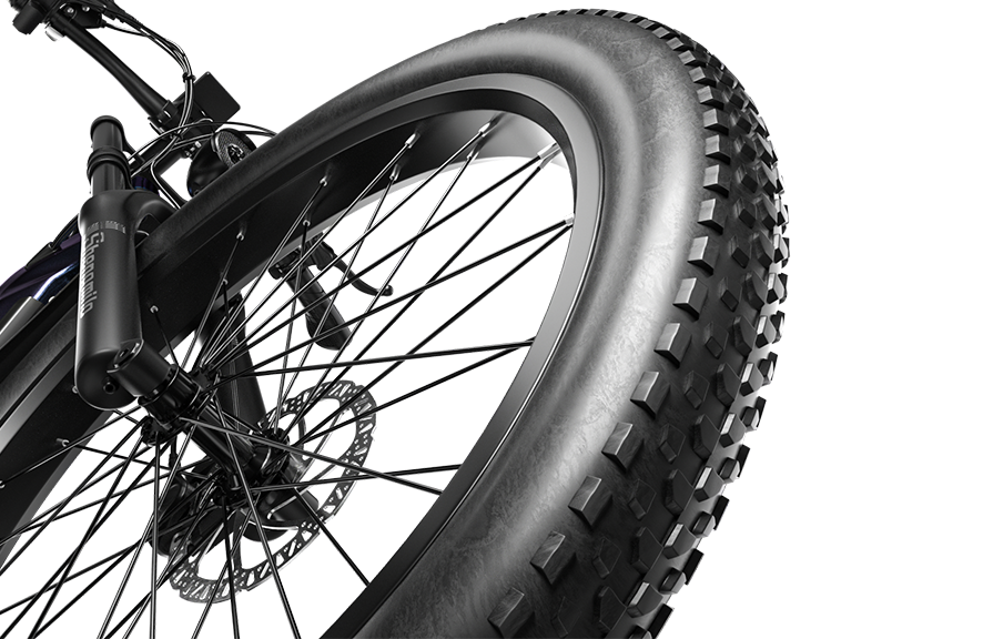 Tires26" x 3.0" tireLightsPowerful High and Low BeamBrakeZOOM mechanical disc brakeFront ForkAluminum alloy double shoulder front fork