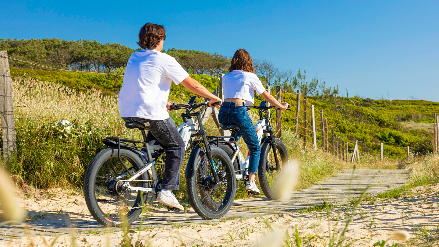 The 26*3.0-inch wide mountain tire provides better grip and traction on the most challenging terrains. The greatest fun comes from riding on beaches, snow, and mountain trails, leaving a lasting impression