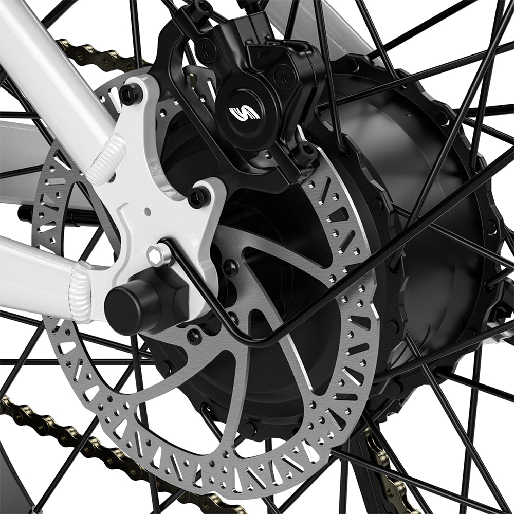 Both the front and rear wheels use hydraulic brakes. The brake system has the function of cutting off the motor power. When you hold the brake lever, the motor will stop outputting power, thereby achieving a fast and stable braking effect. At the same time, it also extends the life of the brake pads and ensures your riding safety.