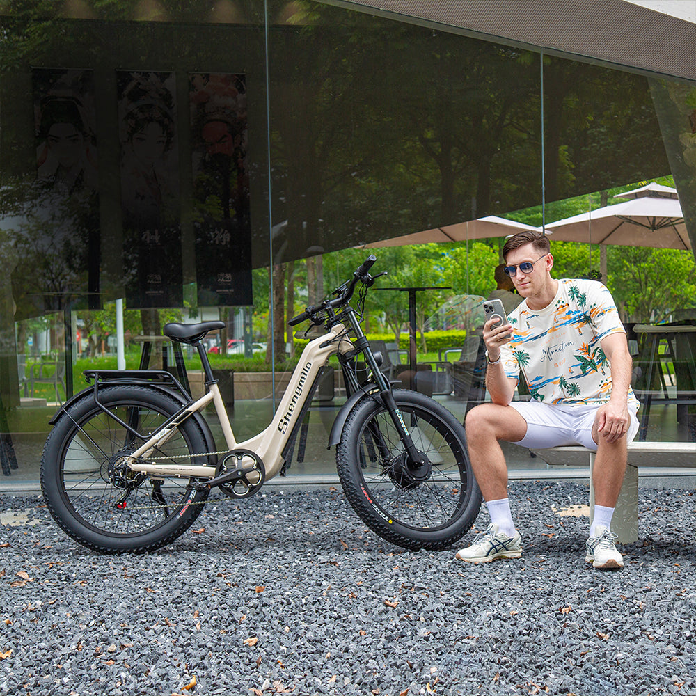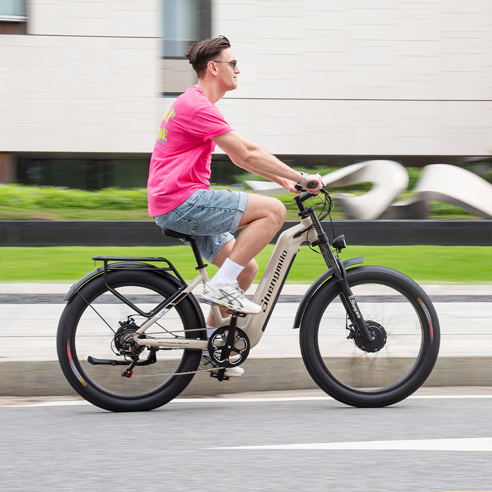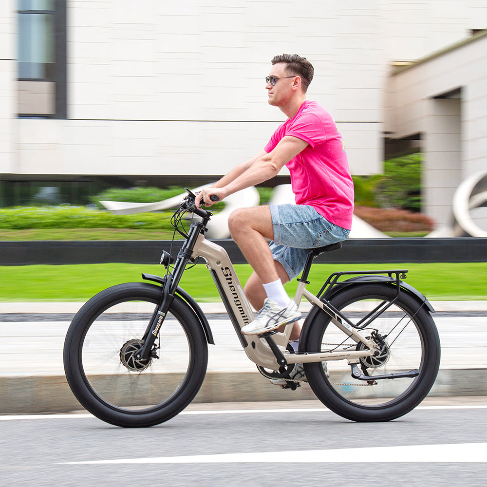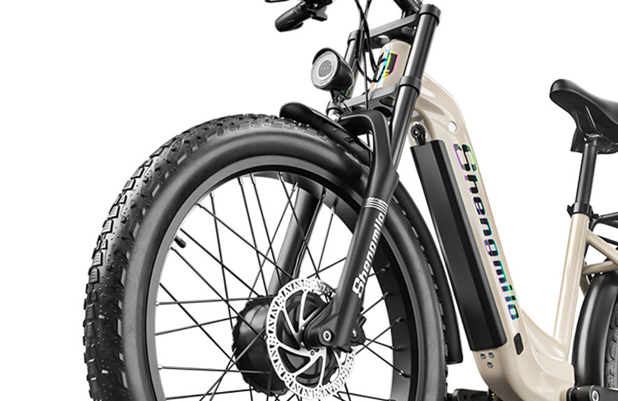 The pride of the S700 lies in its exceptional dual-shoulder front fork with outstanding shock absorption. The Shengmilo S700 full-suspension electric bike offers a comfortable riding experience, with enhanced control over various terrains. It is suitable for various activities, reduces impact, improves safety, and performs even better with electric assistance.