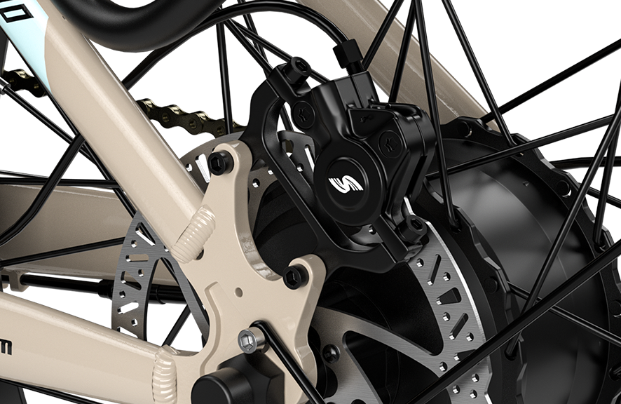 Both the front and rear wheels are equipped with SOLONG brand hydraulic brakes. The braking system features a motor cut-off function, which stops the motor power when you pull the brake lever. This provides quick and stable braking, while also extending the lifespan of the brake pads, ensuring your riding safety.