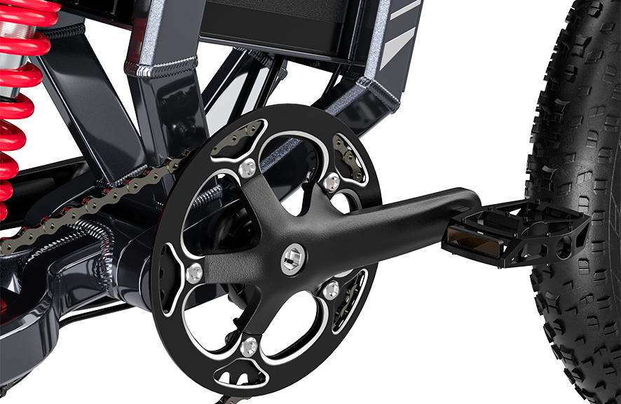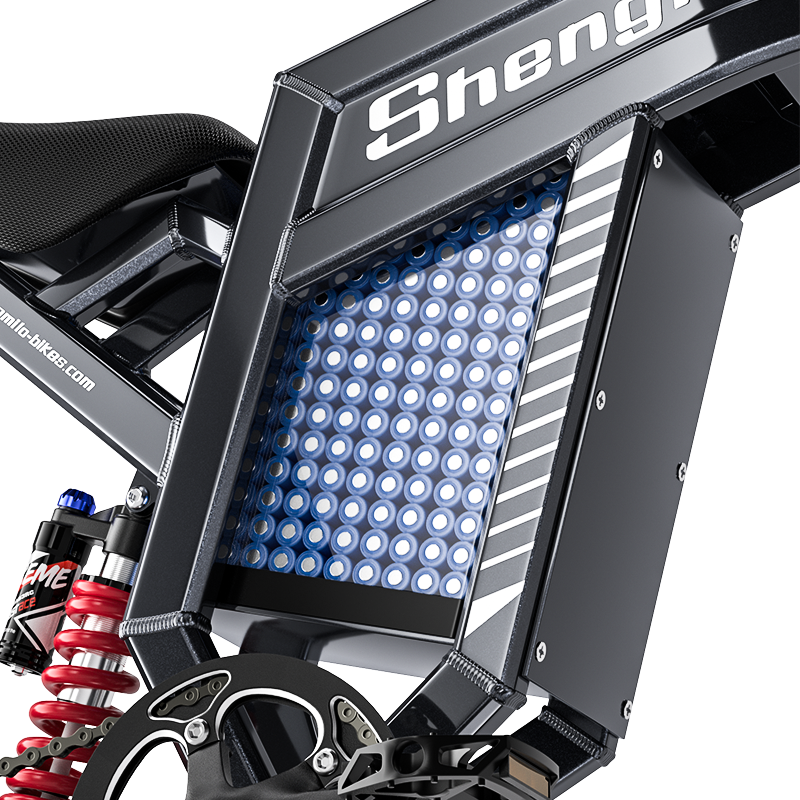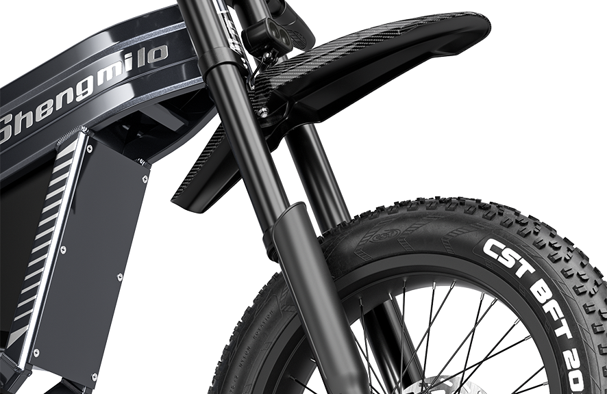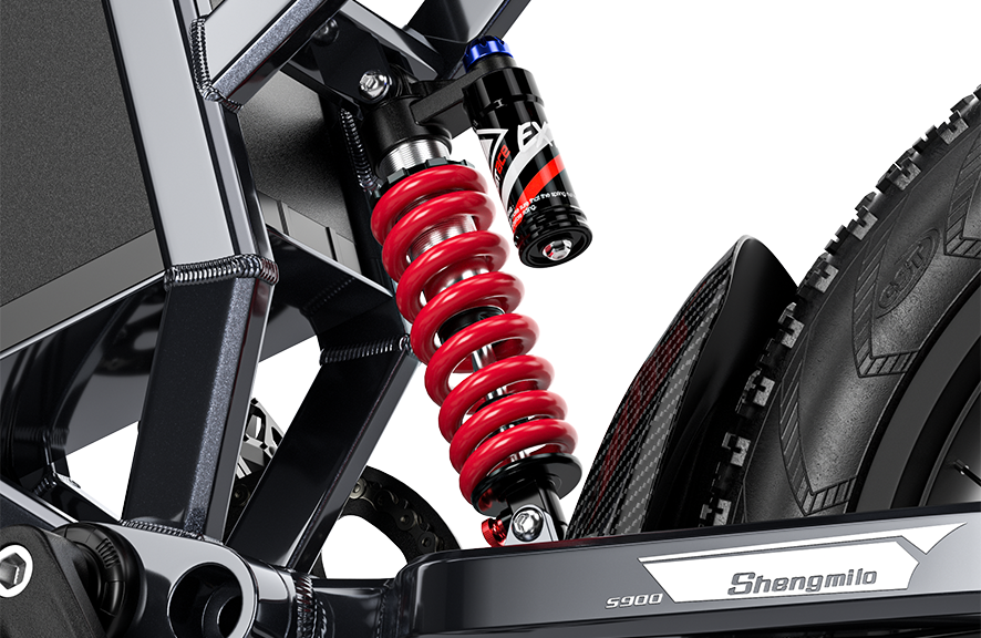 A key highlight of the Shengmilo S900 is its use of premium branded rear shock absorbers combined with a high-performance dual-crown front fork, offering outstanding suspension capability. As a full-suspension electric motorbike, the S900 delivers a comfortable riding experience with enhanced control across diverse terrains. It adapts effortlessly to a variety of riding scenarios, reducing impact, improving safety, and providing superior performance with the support of electric power.