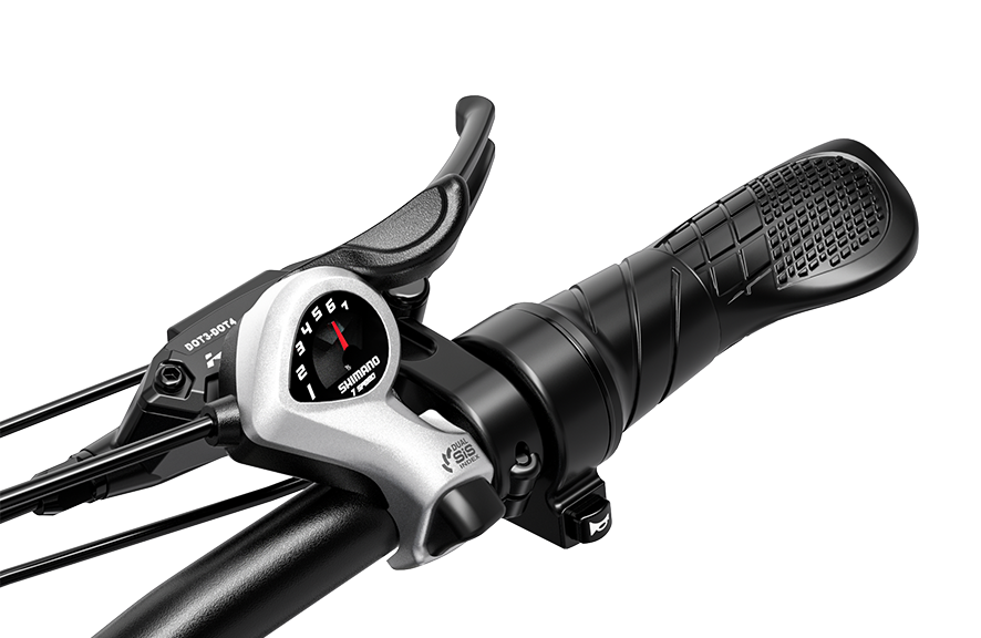 Equipped with the Shimano TX55 7-speed rear derailleur system, this bike delivers outstanding shifting performance for a safe and stable riding experience.Effortlessly switch to higher gears when climbing to boost uphill power, and shift to lower gears at high speeds for greater riding efficiency. Combined with the pedal-assist system, you can easily adjust your speed based on road conditions and riding needs, allowing you to tackle various terrains with confidence and ease.
