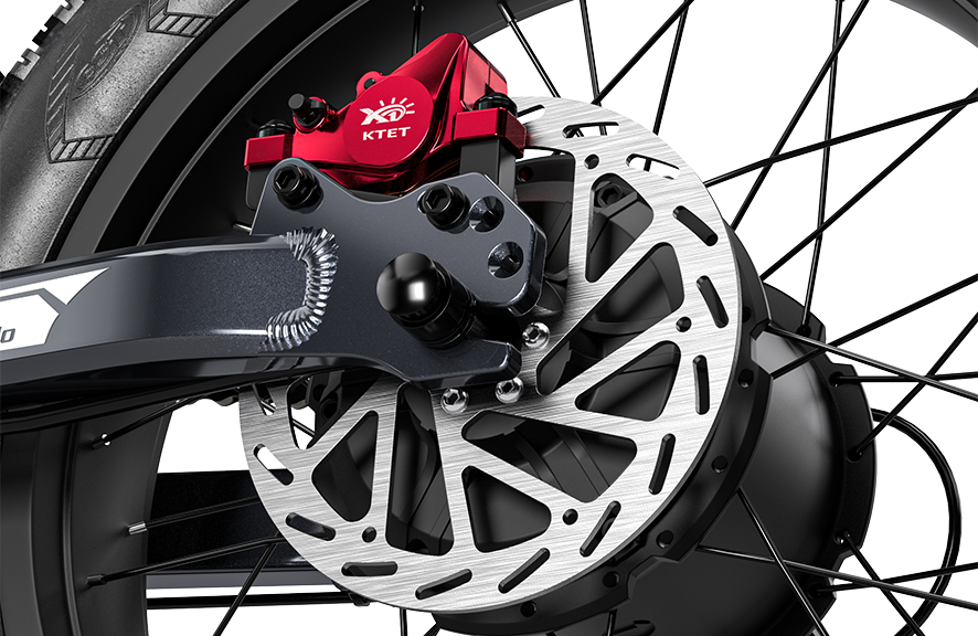 The front and rear wheels are equipped with the SOLON hydraulic brake system, which supports motor cut-off functionality. When braking, the motor automatically stops outputting power, ensuring quick and stable braking while also extending brake pad lifespan and enhancing riding safety.